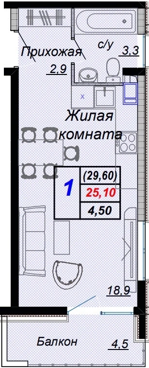 Студия 28.6 м² | ЖК Чайные Холмы